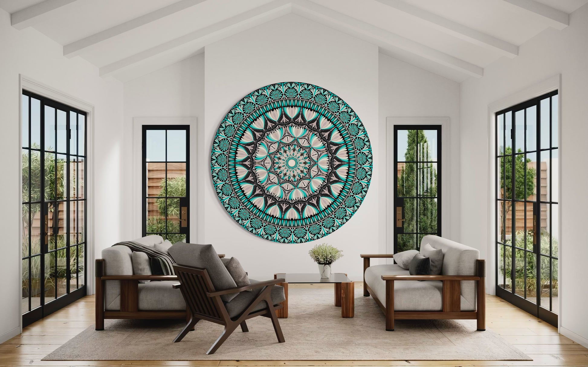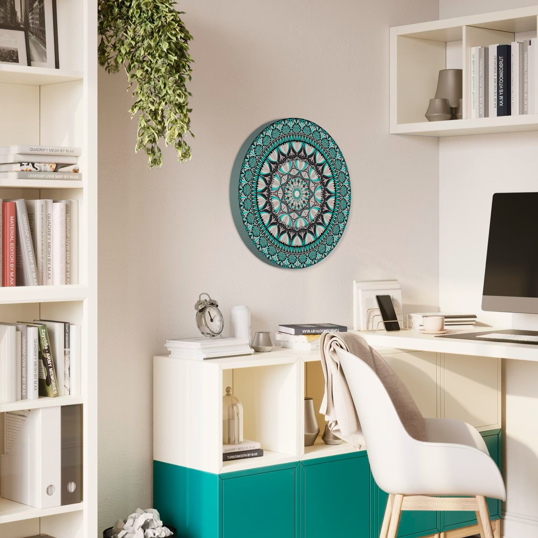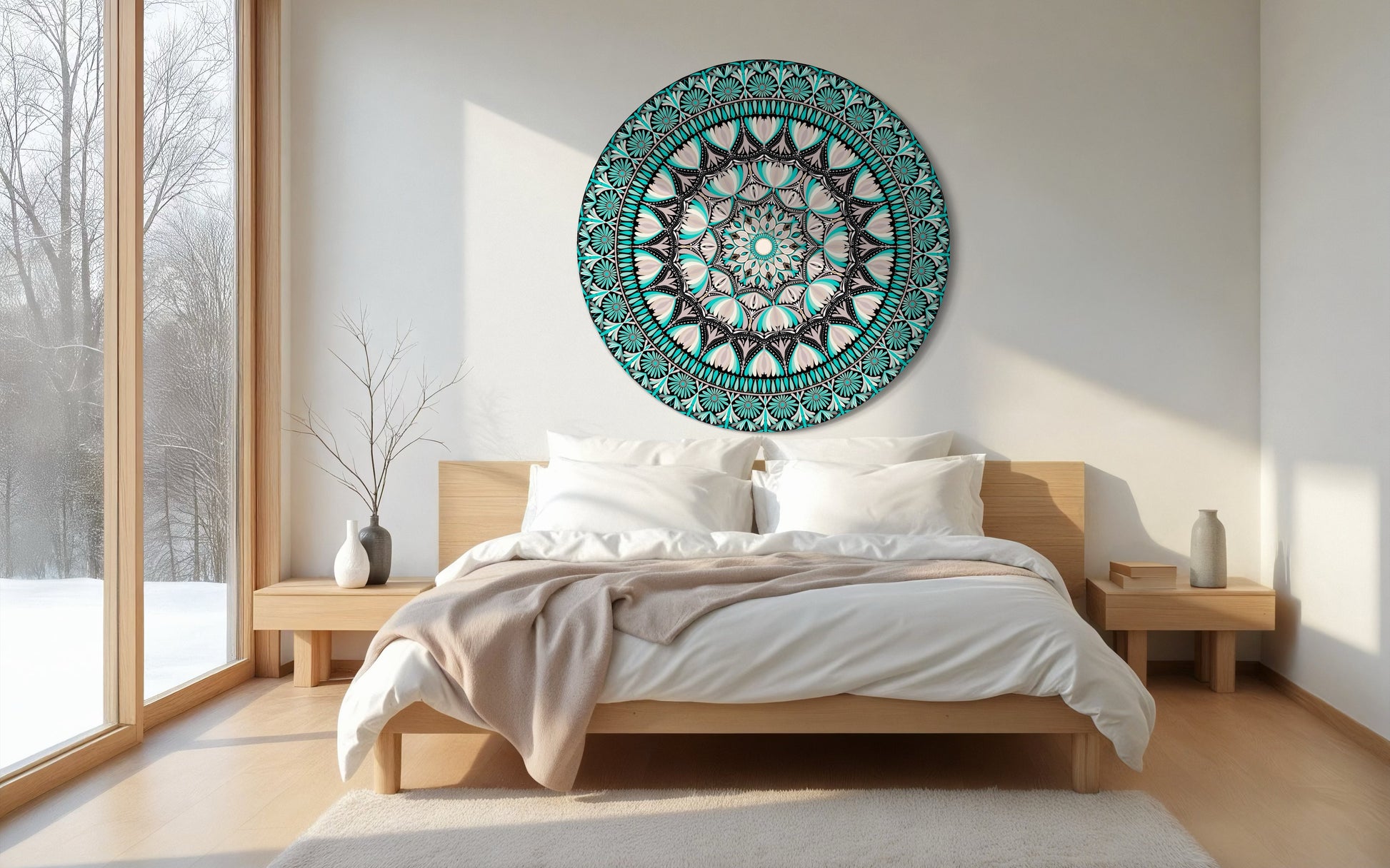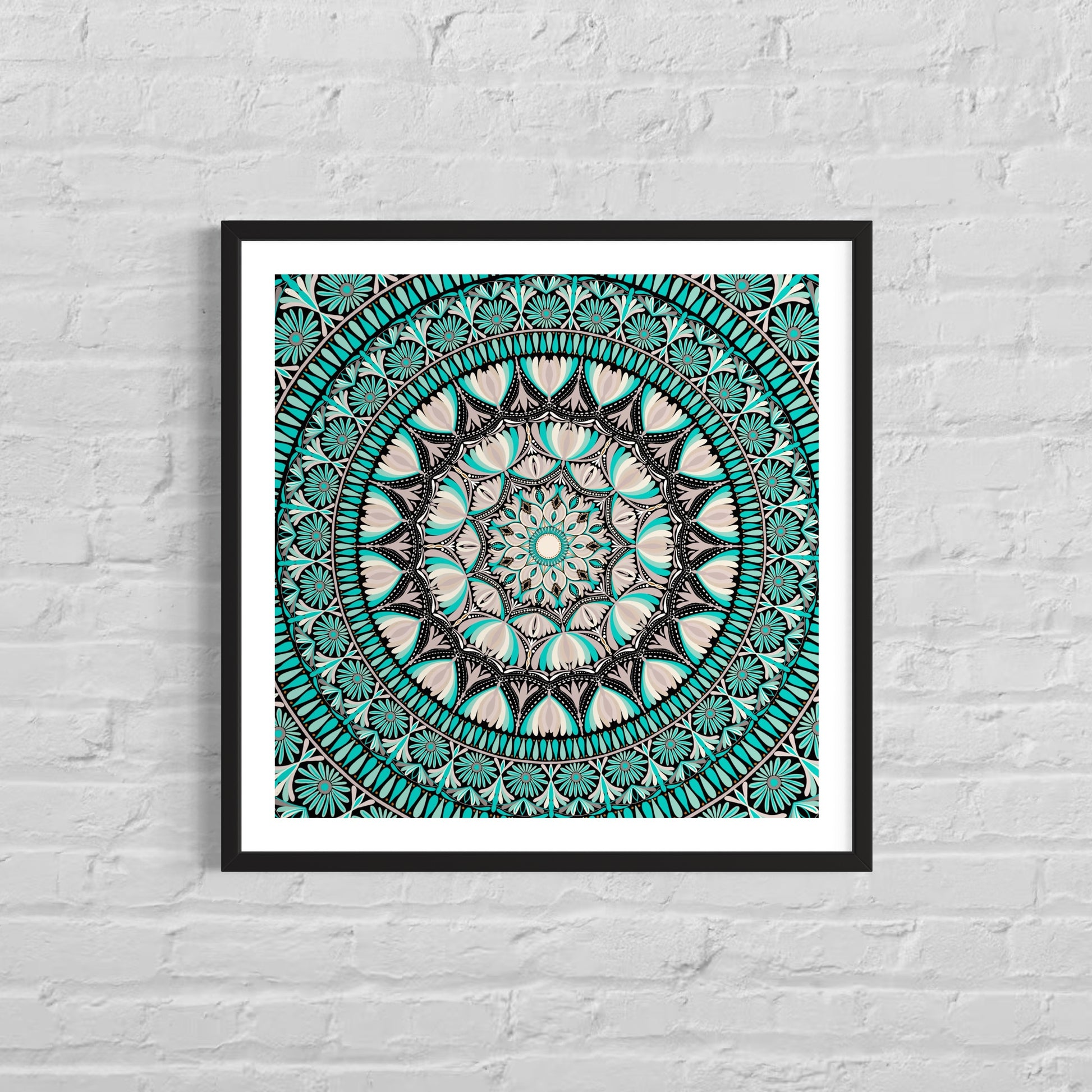 This piece is both grounding and energizing — like the still point in a spinning wheel. It’s perfect for moments when you want to feel more centered, connected, and in tune with yourself. Let the soothing turquoise palette and thoughtful symmetry guide you back to balance, breath by breath.