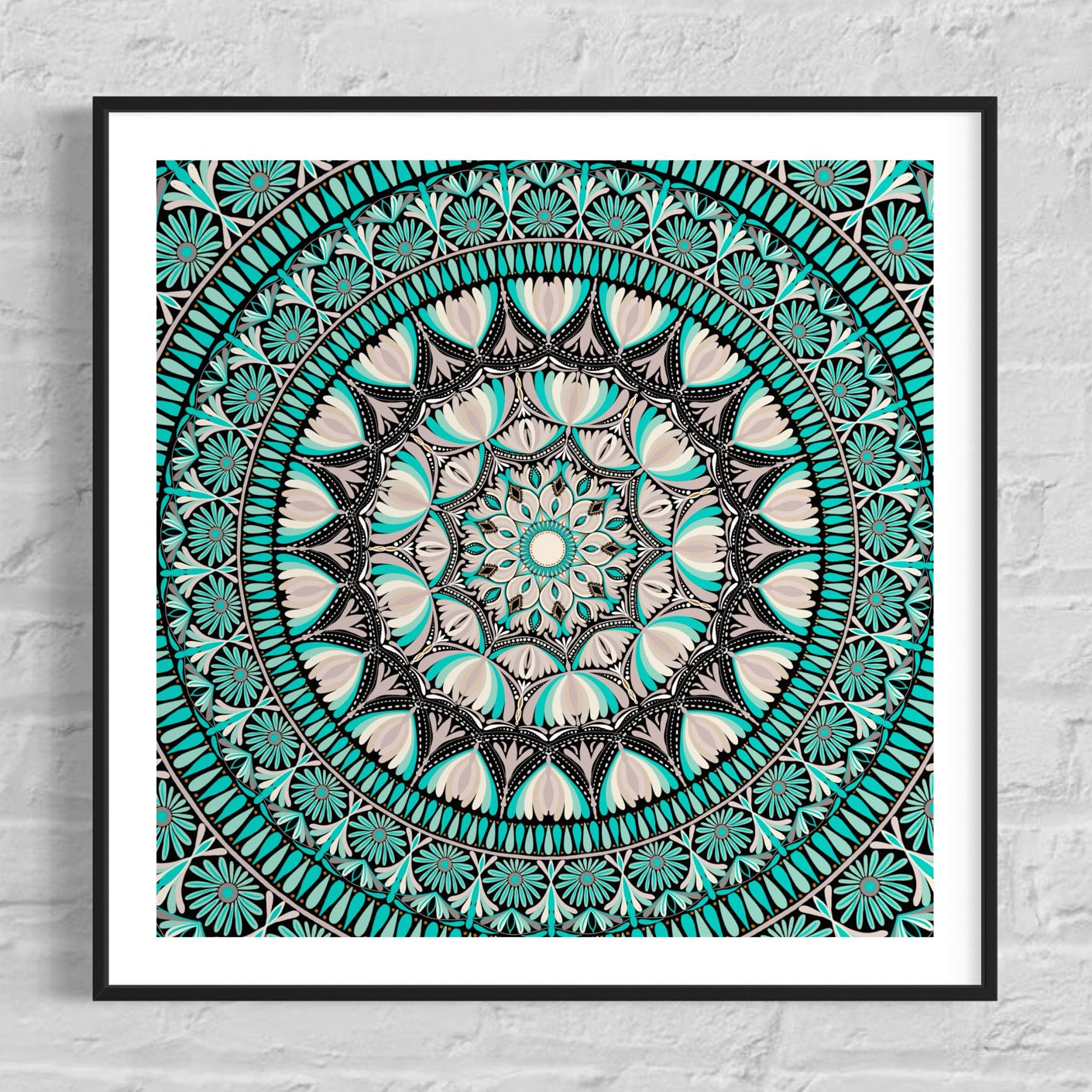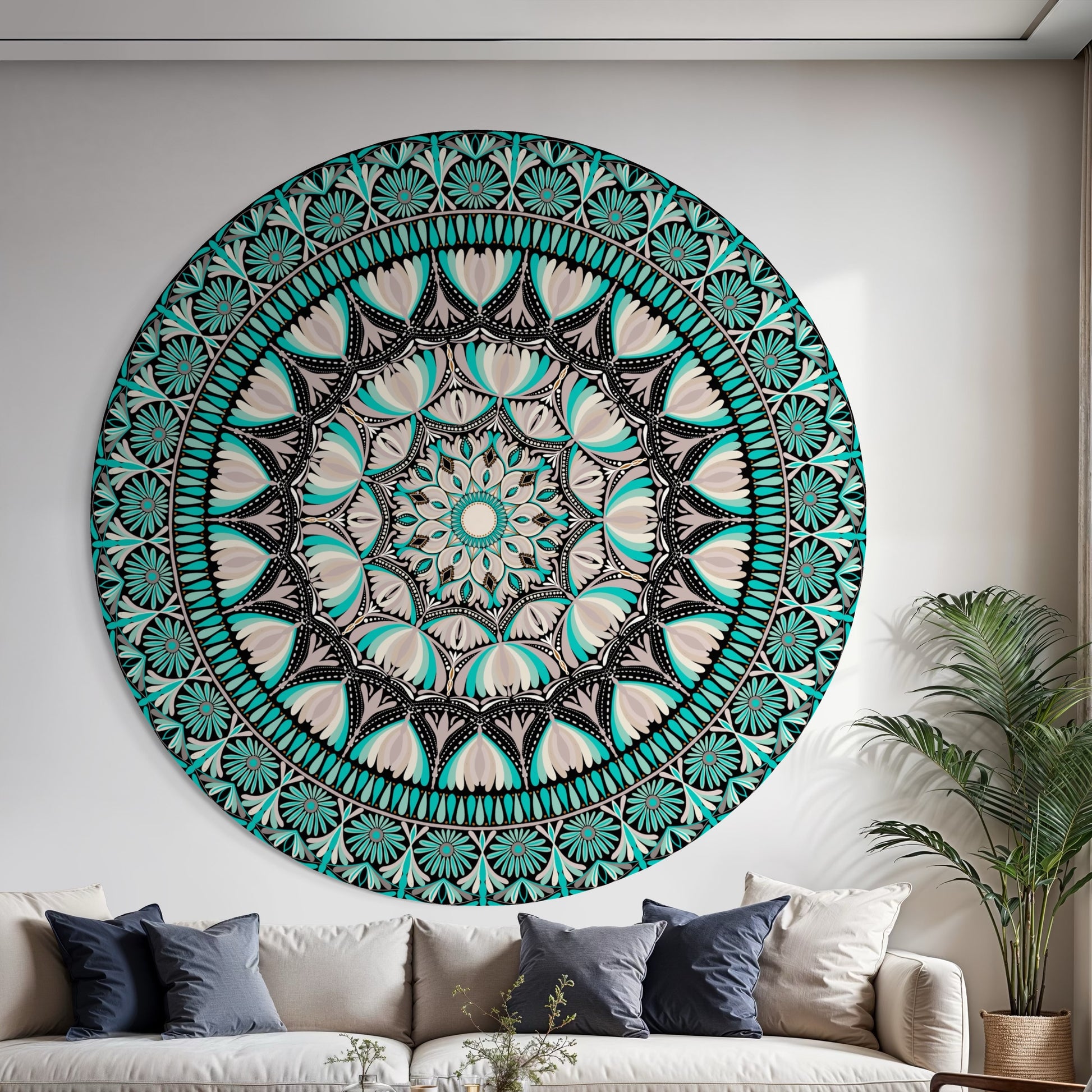 Echoes of Balance is a radiant mandala that speaks to the harmony we seek within and around us. Intricate patterns dance outward from the center, layered in vibrant turquoise hues that evoke clarity, healing, and emotional flow.