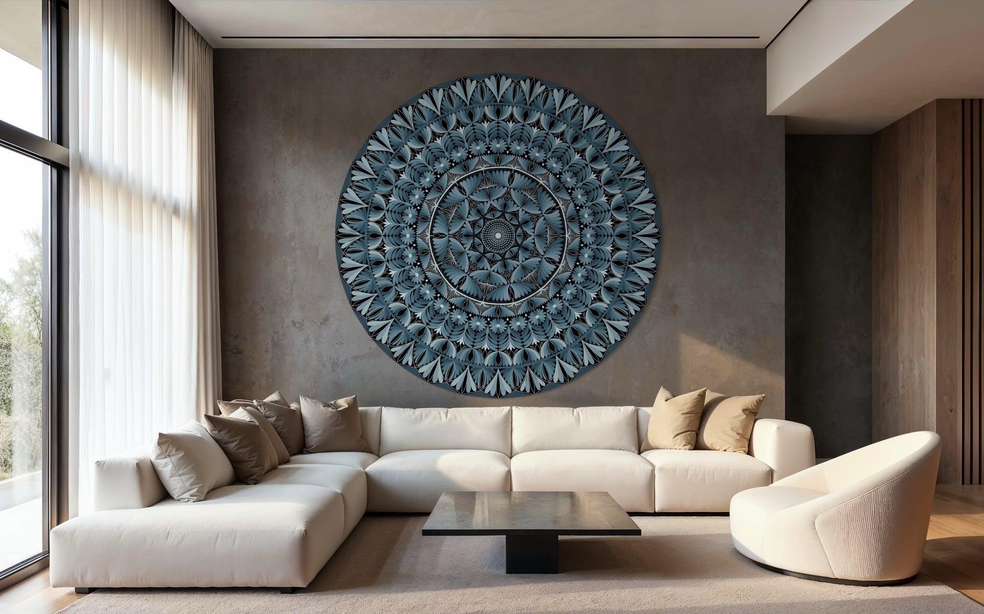 Let your eyes follow the gentle rhythm of Eternal Spiral, where concentric circles bloom into a detailed, meditative flow. This piece is designed to quiet the noise and pull you into a place of stillness — a visual meditation that centers the spirit and soothes the soul.