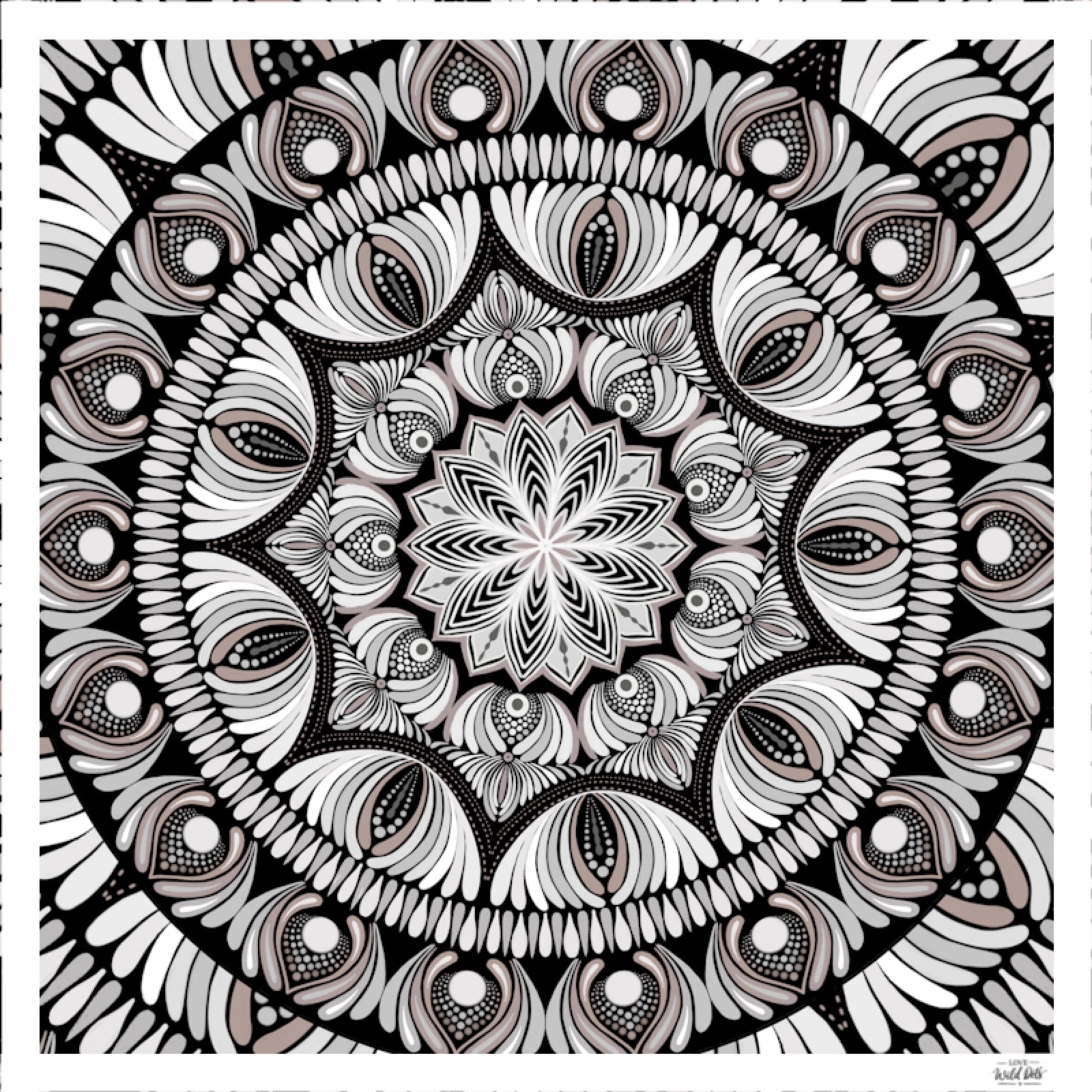 Immerse yourself in the quiet power of Monochrome Illusion, a mesmerizing mandala that unfolds like a whispered prayer. Softly layered in delicate shades of black, white, and grey, this piece weaves intricate patterns into a calming rhythm — a gentle invitation to pause, reflect, and breathe.