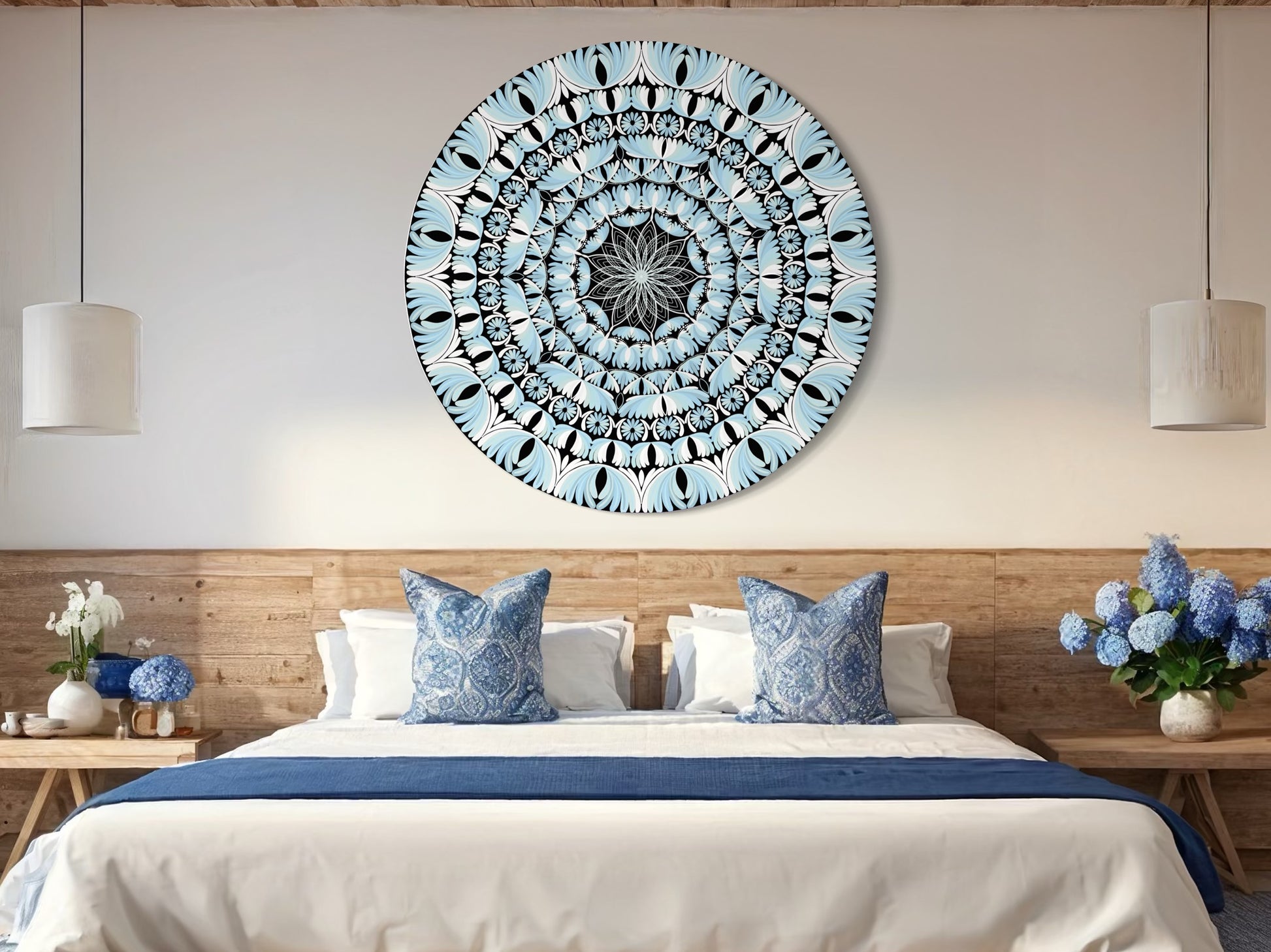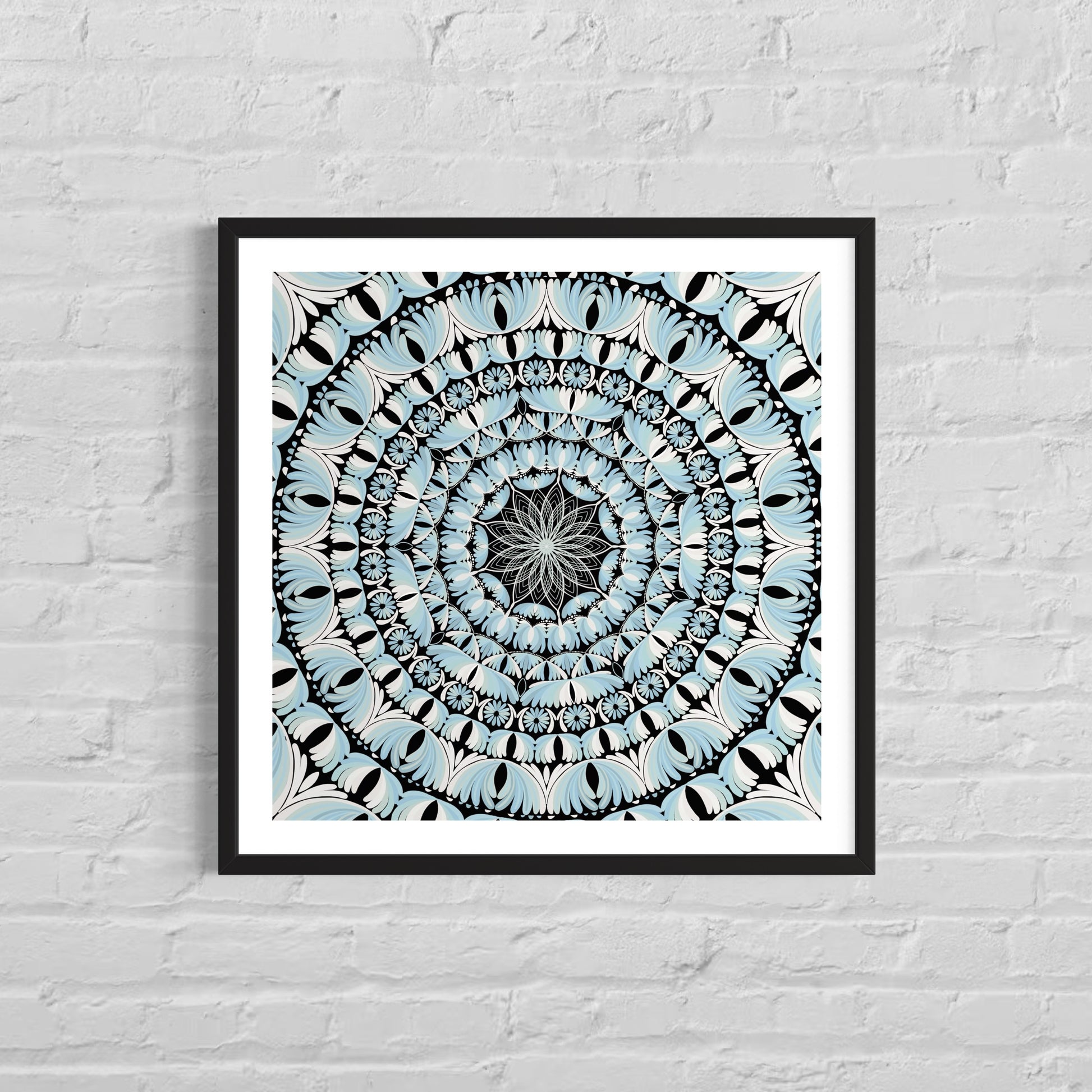 Echoes of Balance is a radiant mandala that speaks to the harmony we seek within and around us. Intricate patterns dance outward from the center, layered in vibrant turquoise hues that evoke clarity, healing, and emotional flow.
