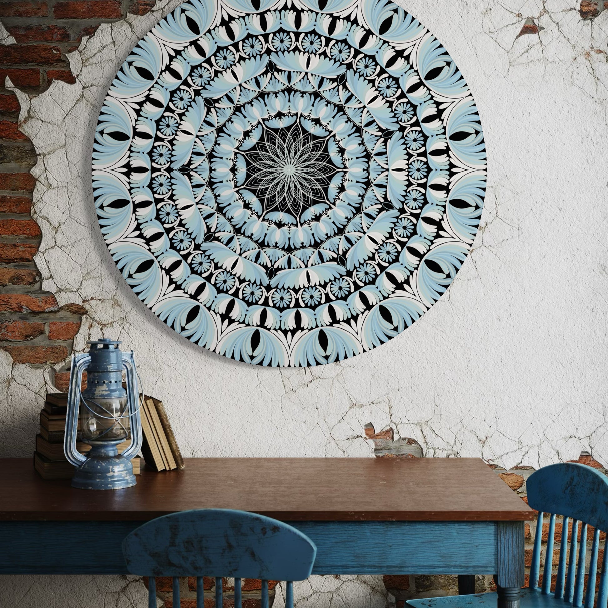 Available as a fine art print, stretched round canvas, or framed print, Echoes of Balance brings a fresh, calming energy into any room — a visual reminder that peace begins within.
