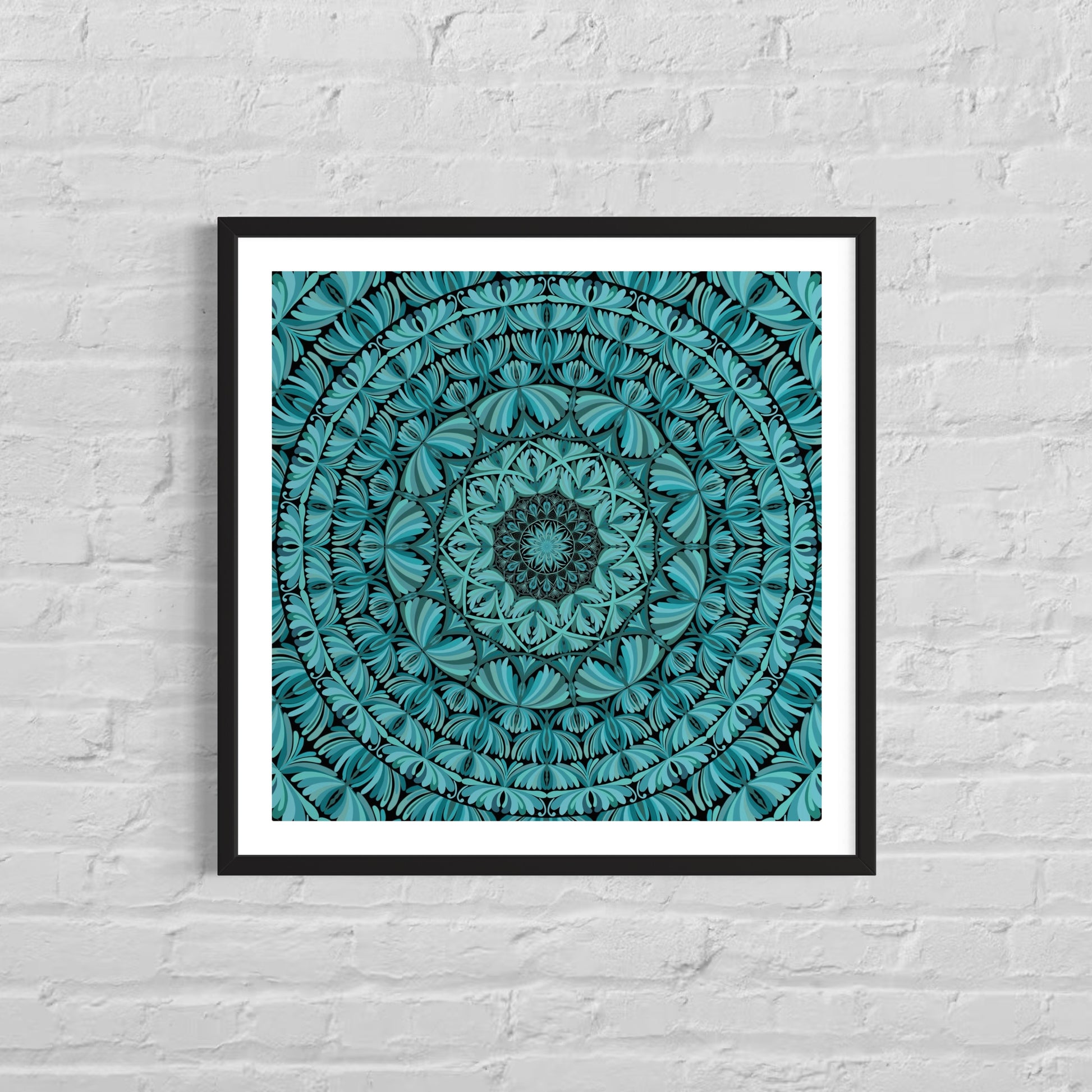 Oceanic Mandala invites you to dive into a peaceful sea of teal hues, where infinite circles and delicate symmetry come together in a mesmerizing pattern. This artwork creates a calming rhythm that gently draws you inward, inspiring relaxation and mindful stillness.
