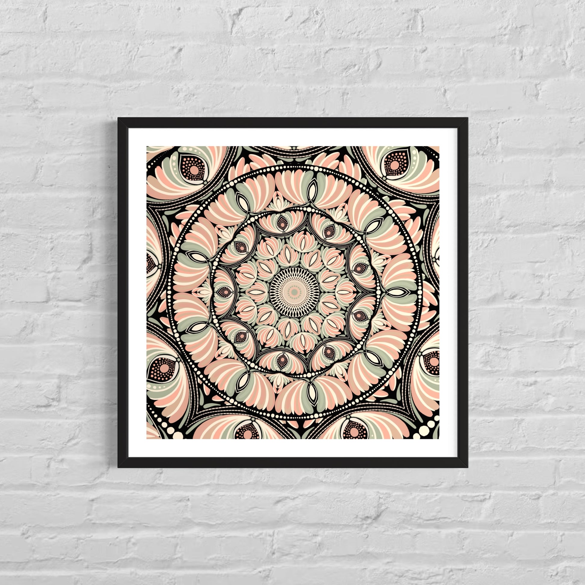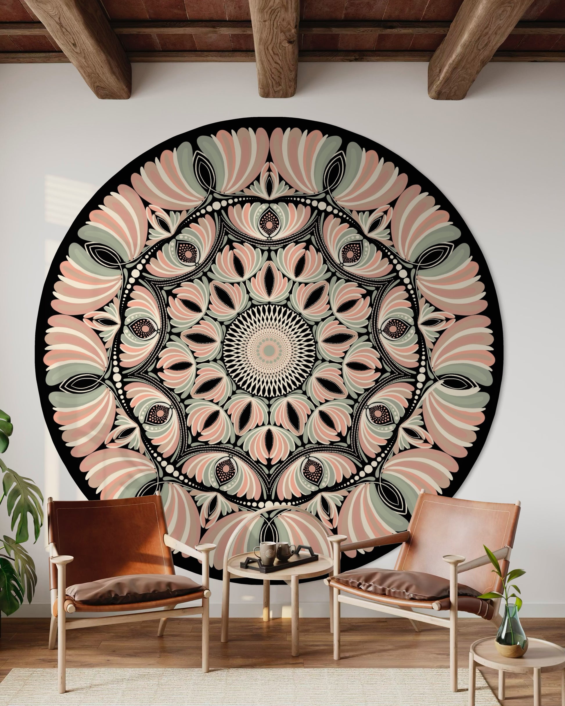 Petal Symphony is a delicate mandala that brings together soft pink and gentle green floral motifs in a beautifully balanced and intricate design. Each petal flows into the next, creating a graceful dance of symmetry that invites calm and centeredness.